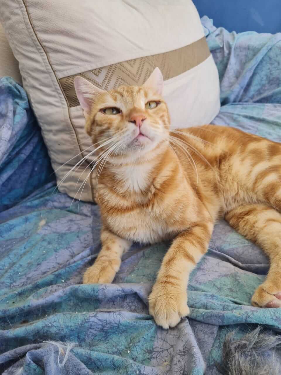Als Elisavet ihn einfing, war schnell klar: Mischa ging es nicht gut. Kein Wunder, da sechs Jahre Überlebenskampf auf den Strassen Athens seine Spuren hinterlassen. Zum Glück schlugen die Medikamente rasch an, und schon bald zeigte Mischa, was für ein herzensguter, sanfter und sozialer Kater in ihm steckt.